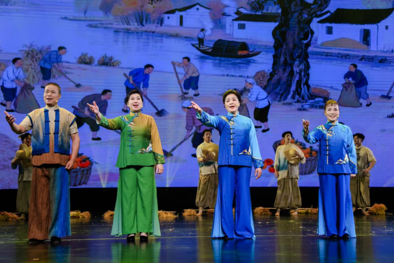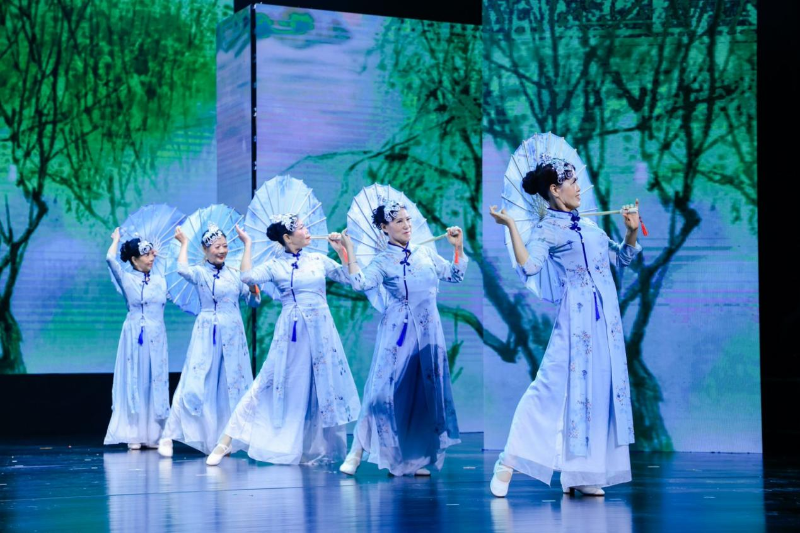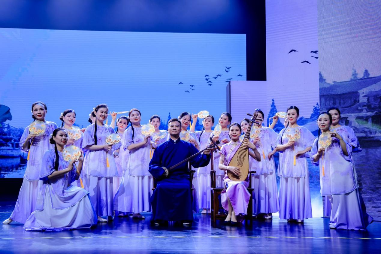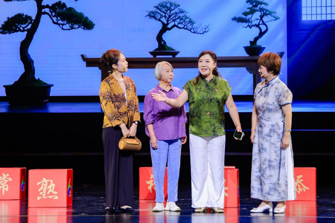 汇演在太仓市退管中心的滚灯表演《欢喜灯缘》中拉开帷幕,以光影交织的传统技艺点燃全场氛围。上篇节目中,相城区社保中心带来的歌舞评弹《梦绕·春申》,巧妙融合非遗评弹与女子群舞,再现小桥流水、杏花微雨的江南诗意,展现相城“评弹之乡”的魅力;吴中区退管中心的音诗画《寻艺》通过朗诵与舞蹈结合,呈现亘古非遗在新时代的活力,带领观众开启一段追寻传统技艺之美的心灵之旅;工业园区社保中心推出的戏曲联唱《姹紫嫣红梨园春》,以精湛唱腔演绎经典选段,展现了非遗戏曲的永恒魅力;常熟市退管中心的情景剧《乐龄会发光》,讲述了退休老人“退而不休”发光发热的感人故事,传递充实快乐的晚年正能量;昆山市退管中心的舞蹈《奥灶面》别出心裁,舞者们用灵动舞姿演绎烹饪过程,将地方美食文化展现得活色生香。下篇节目中,吴江区退管中心的《乡下街上人》,以同里宣卷为载体,原汁原味地演绎了新农村建设中农民社会观念的转变,展现非遗曲艺的时代新声;无锡市社保中心献演的伞舞《烟雨江南》以柔美婉约的舞姿,勾勒出一幅水墨江南的诗意长卷;高新区社保中心的小品《特别“养生”》,通过诙谐幽默的表演,聚焦融媒体直播场景下老年人群体的权益,笑料不断又发人深省;姑苏区社保中心的歌伴舞《四季山歌》阵容强大,以“春耕、夏耘、秋收、冬藏”为脉络,展开一幅江南农耕文化美丽画卷。作为承办方,张家港市退管中心精心准备的苏州评弹《大饼嫂嫂》,讲述小人物坚守诚信、传承家风的故事,折射大时代下的奋斗精神。尾声部分,常州市社保中心的歌舞《花开新时代》由20位舞者共同演绎,以绚丽多彩的舞姿象征新时代的繁荣昌盛与蓬勃生机,表达了对美好生活的赞美与向往,为整场汇演画上圆满的句号。