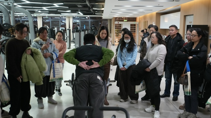 社会体育指导(健身)课程的现场也很热闹,学员们紧盯授课老师的动作示范,在口令引导下精准练习肩颈拉伸的发力技巧、核心训练的科学方法,不仅舒缓了工作日久坐积累的疲惫,更在沉浸式学习中解锁专业健身技能。