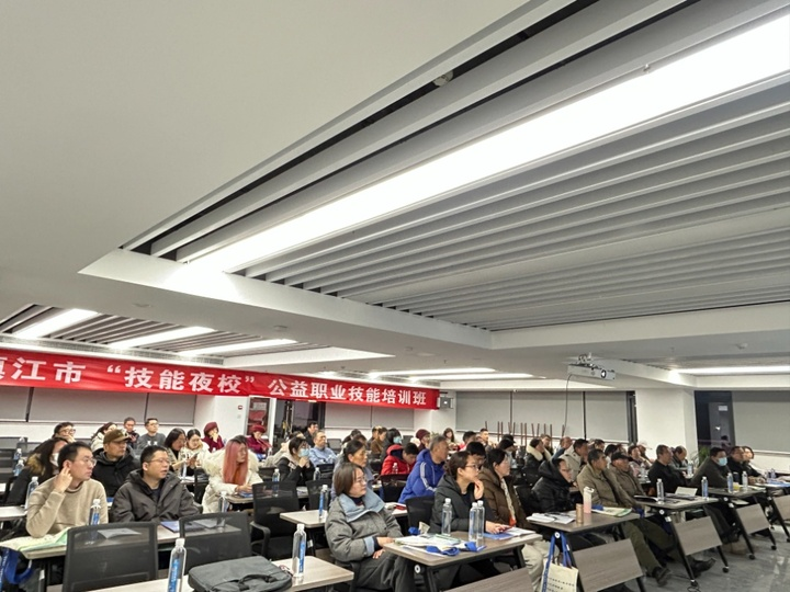 1月22日晚,镇江市“技能夜校”公益培训正式开班,形象设计、AI技术入门、社会体育指导(健身)、CAD设计等首批课程同步开讲,343名学员赴约这场涵盖“产业适配”“生活服务”“地方特色”的公益技能培训。