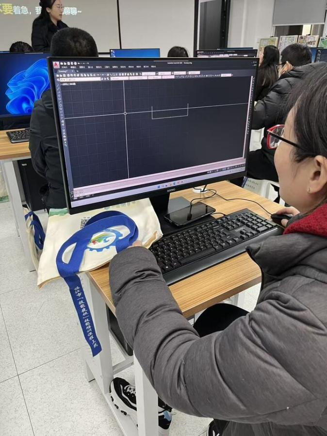 CAD设计课堂上,授课老师以任务驱动为核心,系统讲授软件基本操作与制图规范,从工作界面认知、绘图环境设置到对象捕捉技巧,再到二维图形绘制与编辑,每一个知识点都结合工程实际案例拆解讲解。学员们紧盯电脑屏幕,指尖在键盘与鼠标间灵活切换,不时就绘图细节向老师请教。