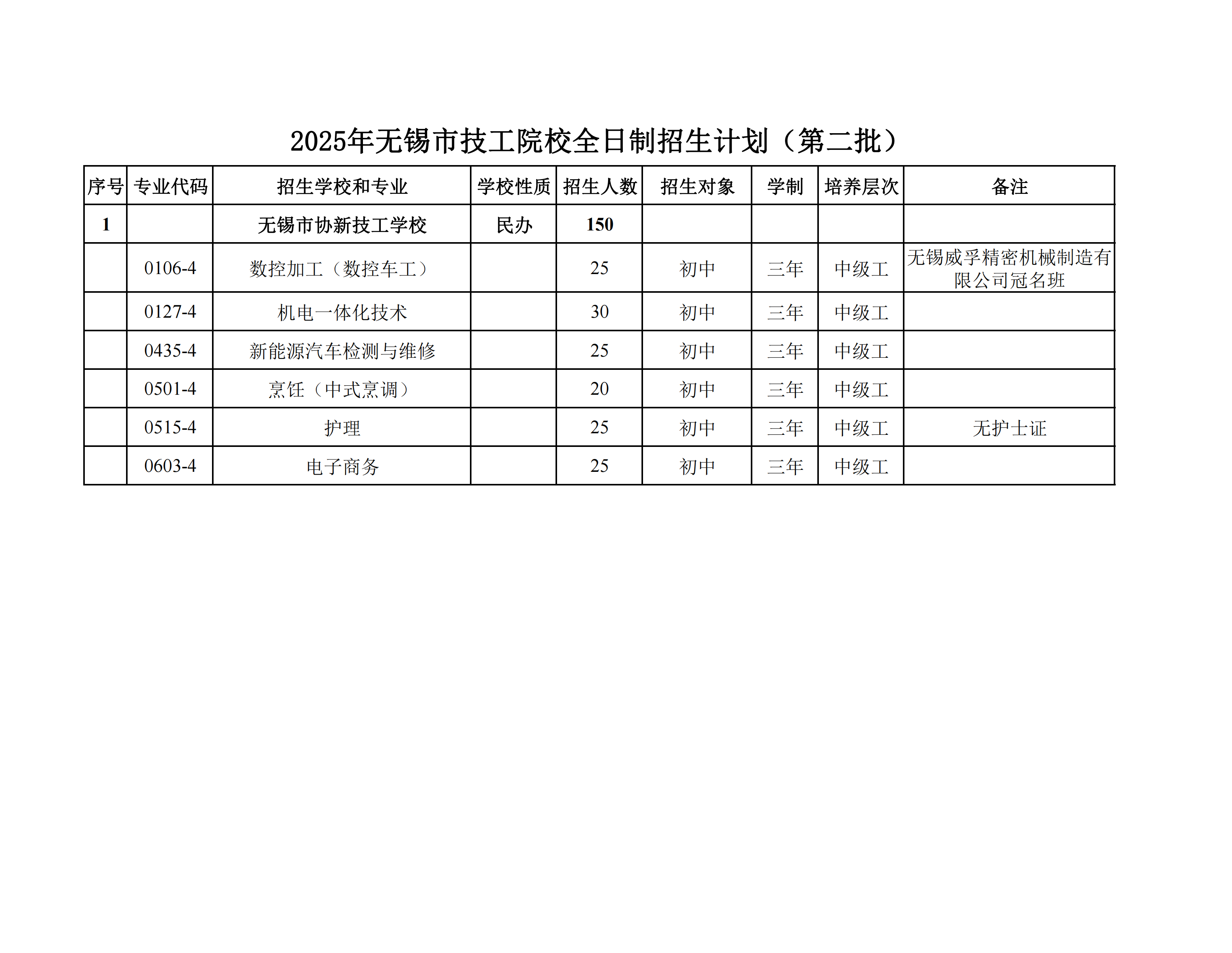 2025年无锡市技工院校全日制招生计划(第二批)