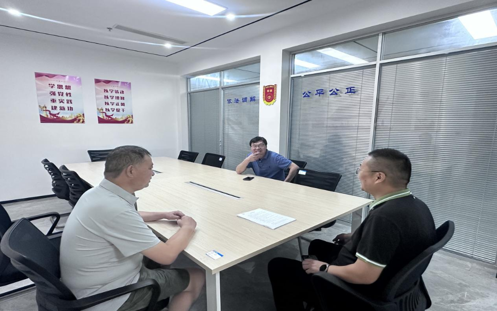 二、讲法理,在高效沟通中化解矛盾纠纷。针对每一个案件,他始终秉持情、理、法并重的原则,认真分析争议焦点,引导当事人双方换位思考,注重倾听并尊重双方当事人的意愿表达,同时依据法律和事实进行理性分析,寻找主要矛盾焦点和双方利益的平衡点,动之以情、晓之以理,综合采用“背靠背”分别沟通、圆桌会议等方式,促进双方达成一致意见。为了方便外地来丰务工人员,积极利用线上视频平台开展调解工作,曾有一起涉及三地当事人的工程项目工伤待遇纠纷,他通过线上视频让各方 “在线面对面”交流,3天内促成调解,得到当事人的一致认可。他经手的案件调解成功率达到85%以上。
