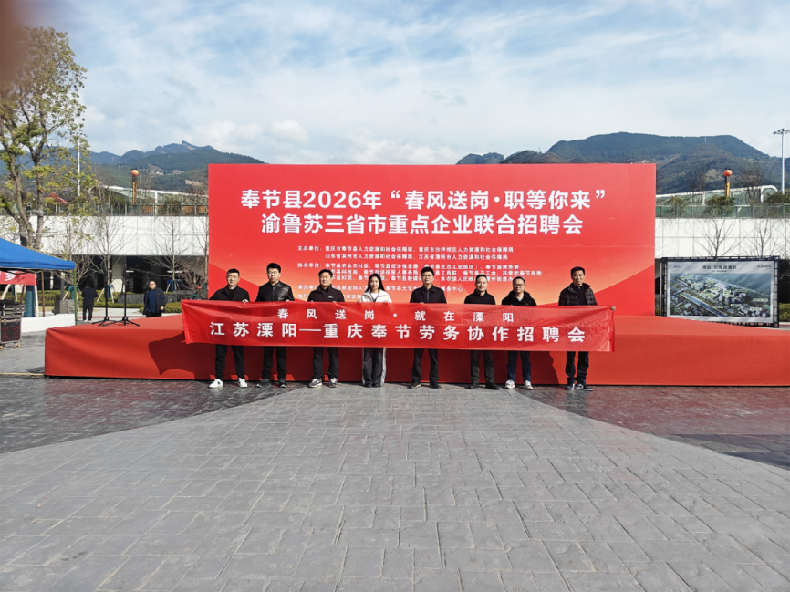 3月3日,溧阳市人社局组织8家重点企业赴重庆奉节县,参加奉节县2026年“春风送岗·职等你来”渝鲁苏三省市重点企业联合招聘会,为两地劳动者与企业搭建起精准对接的“就业金桥”。